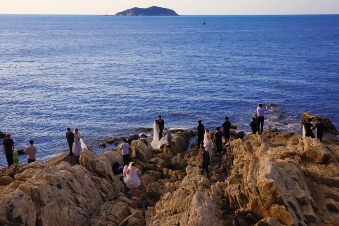 位于三号观景平台的“大项链”是必打卡处。从这里沿阶梯下行,可直达海中石台。正午的阳光洒在海面上,与栈道的剪影构成天然画框,往来游人轻踩台阶,任海风掀动衣角。置身于此,尘世烦忧仿佛都能随风消散。